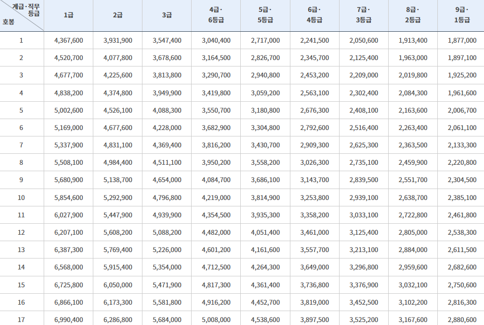 공무원 봉급표 확인하기