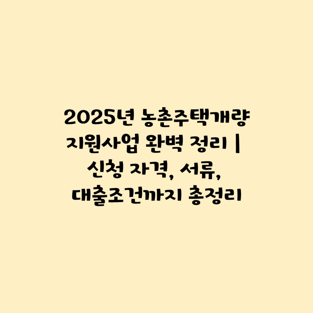 이 글에서는 2025년 농촌주택개량 지원사업의 지원대상, 신청방법, 필수 서류, 대출조건, 신청 절차는 물론 주의사항과 사후관리 기준까지 상세하게 안내해드립니다. 귀농귀촌을 준비 중이거나 농촌에 오래된 집을 개량하고자 하는 분들이라면 꼭 읽어보시기 바랍니다.