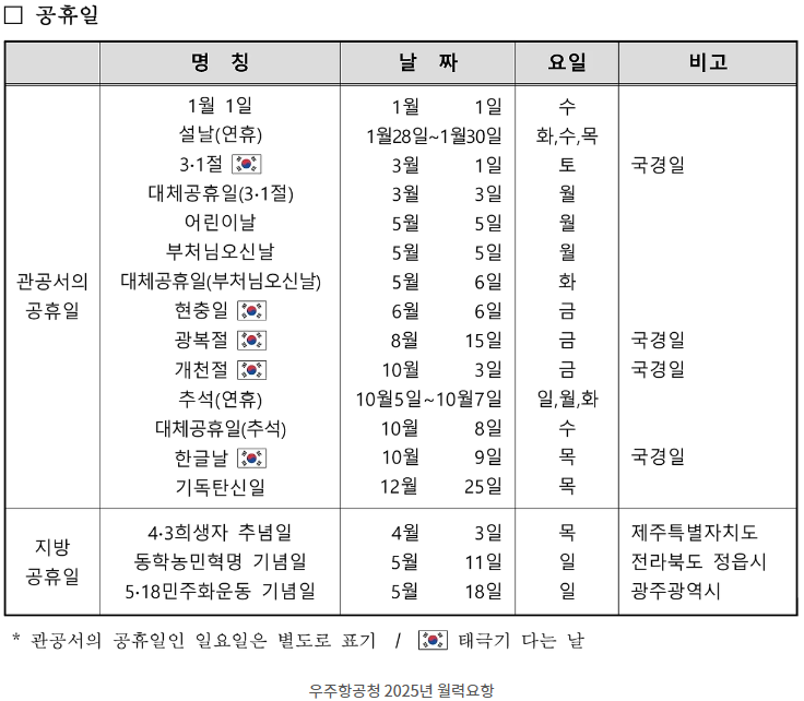 - 1월 28일~1월 30일: 설날 연휴 (3일)