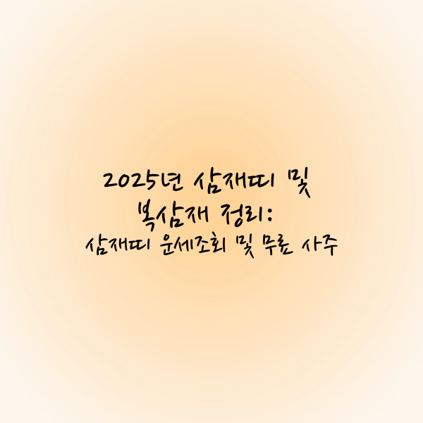 2025년은 토끼띠, 양띠, 돼지띠에게 삼재가 시작되는 해입니다. 삼재는 9년 주기로 돌아오는 불운의 시기로, 건강, 재정, 대인관계 등 다양한 분야에서 주의가 필요하다고 알려져 있습니다. 이번 글에서는 삼재의 개념, 2025년 삼재에 해당하는 띠, 삼재를 대비하는 방법, 그리고 복삼재에 대해 알아보겠습니다. 삼재를 긍정적으로 받아들이고 현명하게 대비한다면, 불운의 시기도 성장과 발전의 기회로 만들 수 있습니다.
