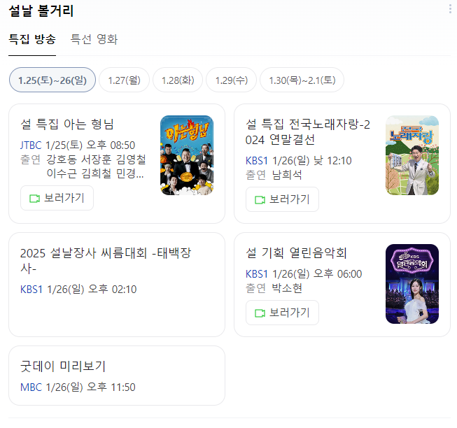 설 명절 특선영화 및 특집방송 편성표 바로가기