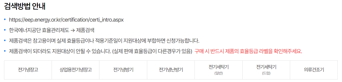 지원 대상 제품은 반드시 에너지효율 1등급이어야 하며, 기기에 부착된 에너지효율 라벨 기준으로만 인정됩니다. - 소급 적용
