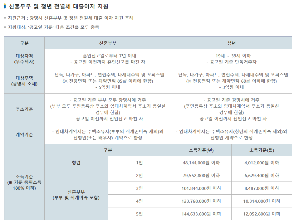 광명시는 전월세 대출 이자 지원 사업을 운영합니다.
