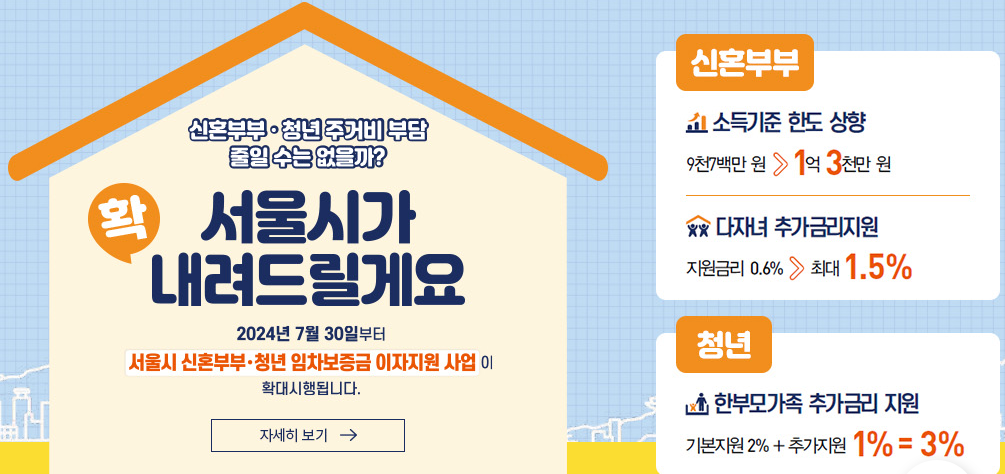 • 지원 내용: 신혼부부 및 청년의 전월세 대출 이자 일부 지원