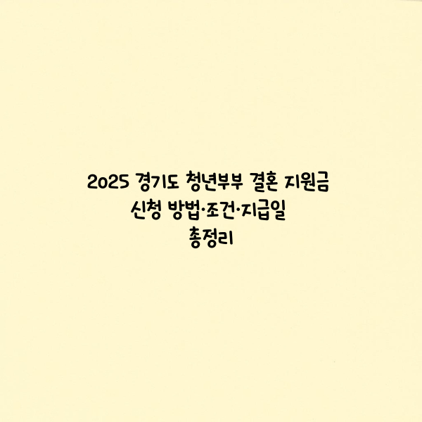 2025년 경기도 청년부부 결혼 지원금은 결혼을 준비하거나 계획 중인 청년 부부에게 큰 힘이 될 수 있는 제도입니다.