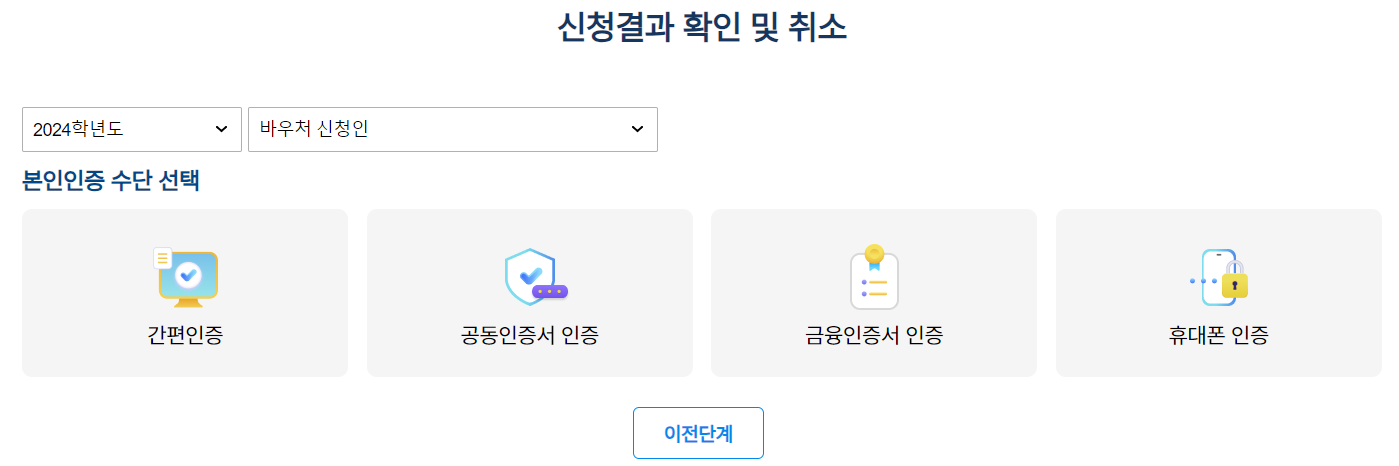 한국장학재단 교육급여 바우처 누리집 접속 → 본인 인증 → 학생 정보 입력 → 지급 수단 선택 → 신청 완료. - 오프라인 신청
