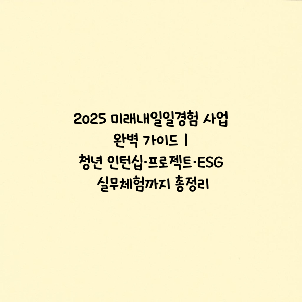 2025년에는 더욱 다양하고 깊이 있는 프로그램이 마련된 만큼, 본인의 상황과 진로 목표에 맞는 유형을 선택해 적극적으로 참여해보세요. 취업 준비의 출발점, 미래내일일경험이 여러분의 미래를 열어줄 것입니다.