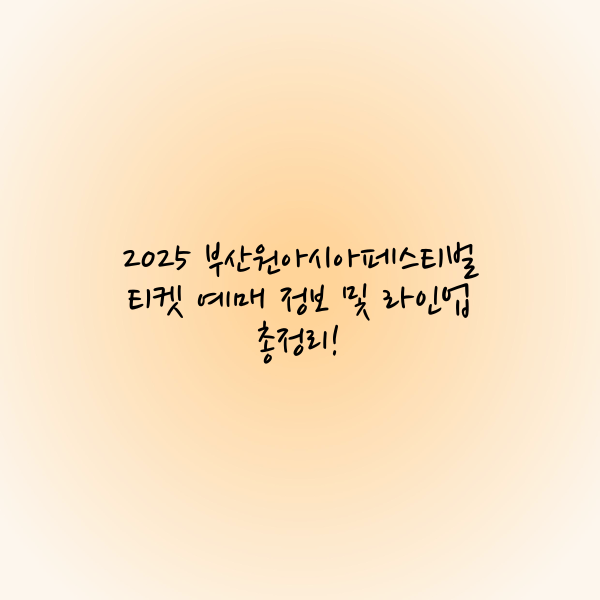 1. 2025 부산원아시아페스티벌(Busan One Asia Festival) 티켓 예매 일정