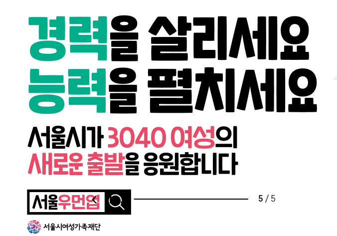 - 이러한 문제를 해결하기 위해 서울시는 **‘서울우먼업 프로젝트’**를 운영하고 있습니다. 이 프로젝트는 3040 경력보유여성을 대상으로 종합적인 재취업 지원을 제공하는 프로그램으로, 구직지원금, 인턴십, 고용장려금 등 다양한 혜택을 통해 여성들의 경제적 자립을 돕고 있습니다.