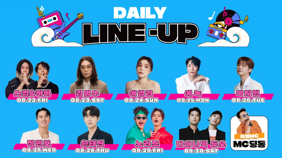 축제 기간 동안 ▶ 다양한 장르의 아티스트들이 매일 공연을 선보입니다: