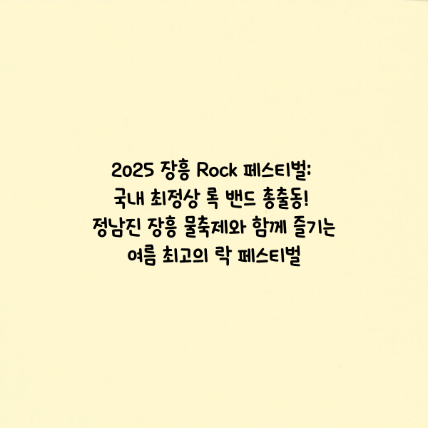 매년 전라남도 장흥에서 열리는 정남진 장흥 물축제의 대표 프로그램으로 자리 잡은 이 락 페스티벌은, 국내외 록 팬들에게 잊지 못할 여름밤을 선사합니다. 특히 2025년에는 한국 록 음악계의 전설들이 총출동하여 더욱 풍성한 무대를 준비하고 있다고 하니, 이번 여름을 놓치지 마세요!