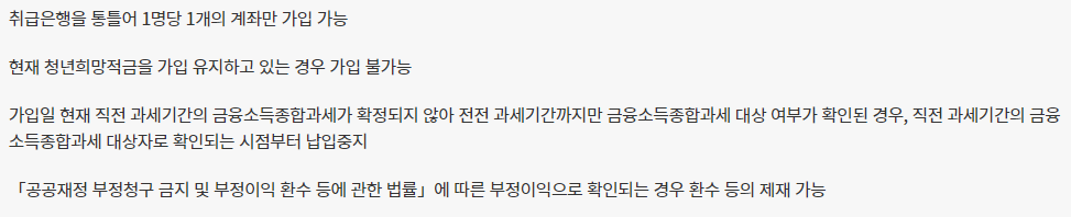 - 1인당 1개의 청년도약계좌만 개설 가능.
