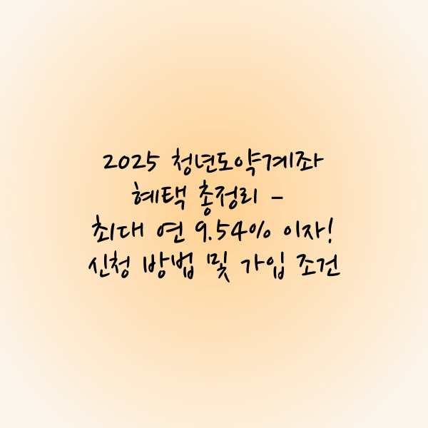 2025 청년도약계좌 혜택 총정리 – 최대 연 9.54% 이자! 신청 방법 및 가입 조건