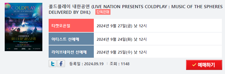 1. 콜드플레이 내한공연 티켓팅 일정