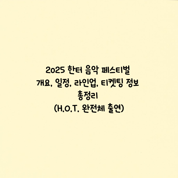 특히 전설의 1세대 아이돌 H.O.T. 완전체 출연이 확정되며 벌써부터 뜨거운 관심을 모으고 있습니다. 본 포스팅에서는 한터 음악 페스티벌의 일정, 장소, 출연진, 티켓 예매 정보, 예상 가격 등 팬이라면 꼭 알아야 할 핵심 정보를 모두 정리해드립니다.