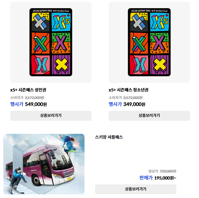 본 시즌패스가 적용되는 스키장은 다음과 같이 총 5개입니다.
