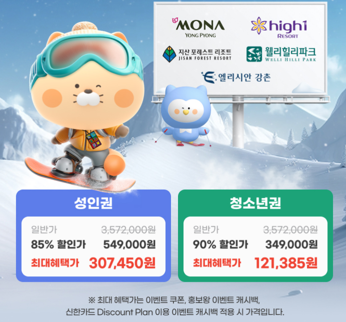 - 특징: 성인권에 쿠폰 39,000원, 청소년권에 쿠폰 26,000원을 적용해 초기가를 형성
