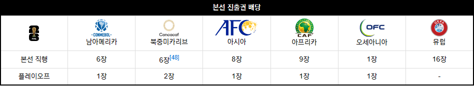 2026 북중미 월드컵 48개 대륙별 본선 진출권 배당