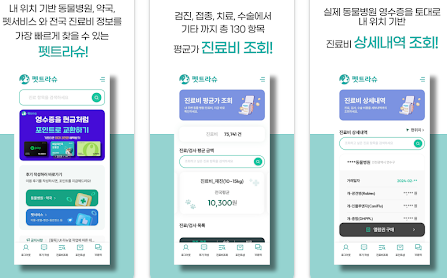 - 주요 기능: 의료비 조회, 증상 기반 질병 검색, 동물병원 및 약국 검색, 동물병원 예약
