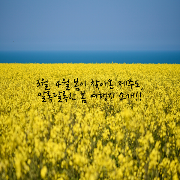따뜻한 봄이 가장 먼저 찾아오는 제주도는 봄 여행을 계획하고 있는 이들에게 환상적인 여행지로 알려져 있습니다. 제주도의 봄은 산방산과 함덕해수욕장부터 시작하여 올레길과 용눈이오름까지 다채로운 명소들이 피어나는 시기입니다. 봄을 맞아 제주도에서는 아름다운 꽃들이 피어나는 풍경을 감상할 수 있는 여행지들이 많습니다. 오늘은 제주도의 봄 여행을 계획 중인 분들을 위해, 각 여행지의 개화 예상 시기와 실제 촬영 날짜를 함께 소개하여 기분 좋아지는 알록달록한 봄 여행지를 모아 소개해 드리겠습니다.