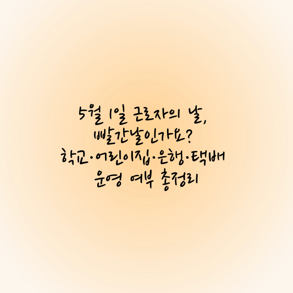 이번 글에서는 근로자의 날의 의미와 법적 지위, 그리고 학교·어린이집·은행·병원·공공기관·회사·택배·배달 등 주요 기관들의 운영 여부를 상세히 알려드립니다. 특히 학부모님들이 많이 궁금해하는 어린이집과 초·중·고등학교의 운영 여부도 다루니 끝까지 확인해 주세요!
