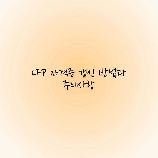 이번 글에서는 CFP 자격증의 갱신 주기, 갱신을 위한 필수 조건, 교육 이수 방법, 갱신 신청 시 주의사항, 미승인 시 해결 방법, 그리고 자격 정지 및 회복 절차까지 자세히 정리해 보겠습니다.