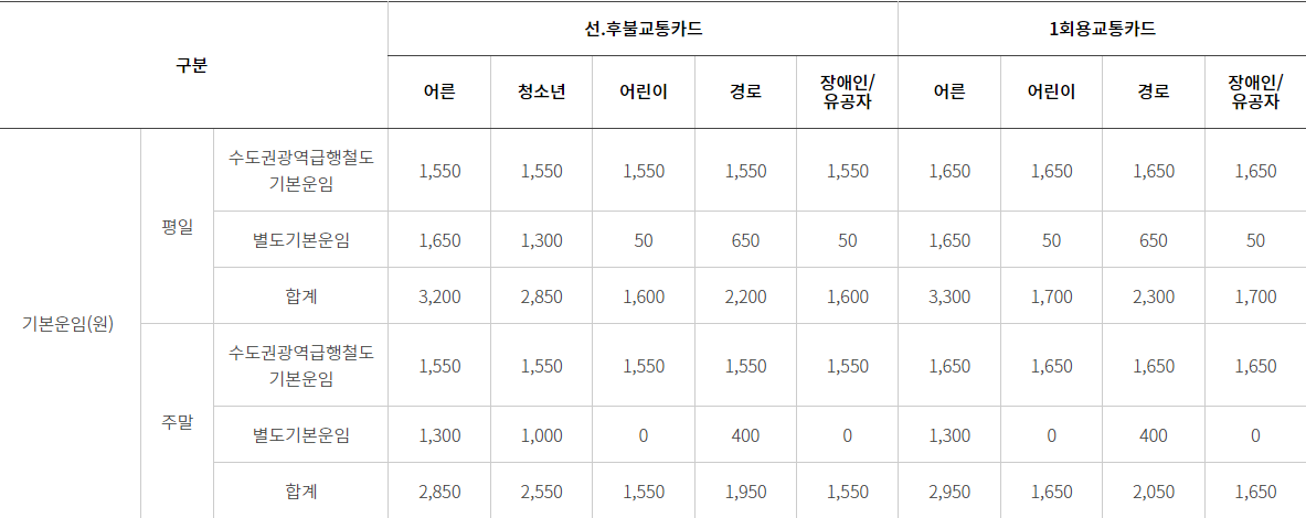 GTX-A는 기본요금과 거리요금으로 요금 체계가 구성되어 있습니다.