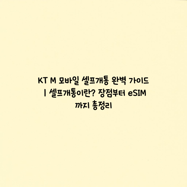 요즘에는 통신 서비스를 개통할 때 더 이상 대리점이나 상담사를 거치지 않아도 되는 시대가 왔습니다. 특히 KT M 모바일에서는 ‘셀프개통’ 서비스를 제공하여, 고객이 직접 원하는 시간에 빠르고 간편하게 개통할 수 있도록 지원하고 있습니다. 본 글에서는 KT M 모바일 셀프개통이란 무엇인지, 셀프개통의 장점과 절차, eSIM 개통 방법까지 꼼꼼히 정리해드립니다.