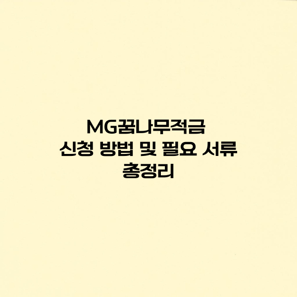 이 글에서는 MG꿈나무적금의 신청 자격, 준비해야 할 서류, 가입 방법부터 자주 묻는 질문까지 구체적으로 안내드립니다. 새마을금고 지점 방문 전 반드시 체크해야 할 정보를 한눈에 확인해보세요.