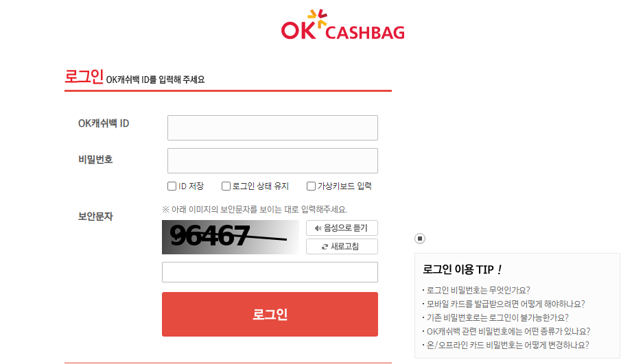 - OK캐쉬백 홈페이지 접속: 먼저 OK캐쉬백 공식 홈페이지에 로그인합니다.