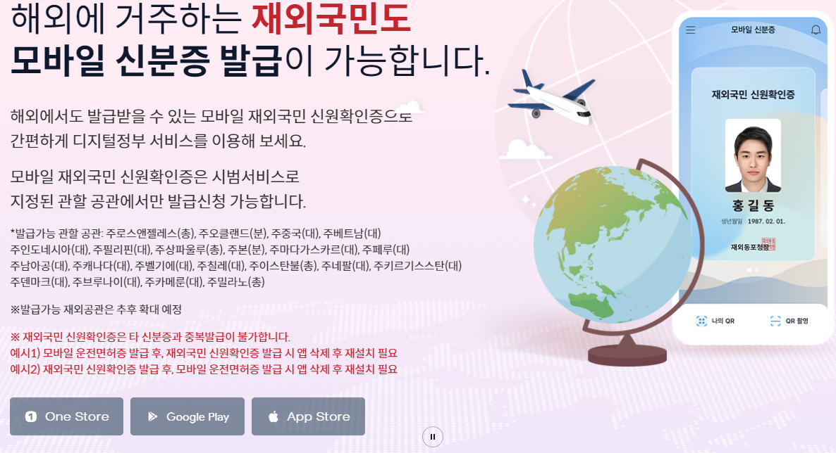 - 공항 탑승: 국내선 탑승 시 모바일 신분증 사용 가능