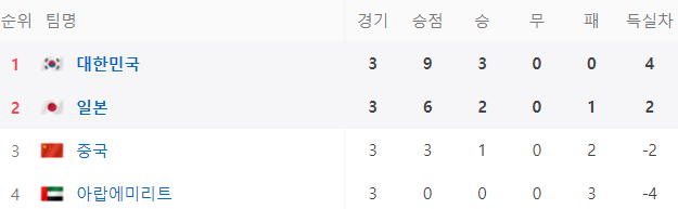 한국과 일본의 최종전은 두 팀의 전략적 배치와 역대 대결의 우세가 돋보이는 경기였습니다. 이번 대회에서 한국은 UAE와 중국을 각각 1-0과 2-0으로 이기며 최종전에 나섰습니다. 마찬가지로 일본도 중국과 UAE를 각각 1-0과 2-0으로 제압하고 최종전에 나섰습니다. 두 팀은 모두 승점과 골득실이 같은 상황에서 최종전 맞대결을 펼쳤으나 승부의 불꽃은 튀지 않았습니다.