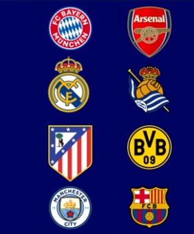 바이에른 뮌헨, 아스날, 레알 마드리드, 레알 소시에다드, AT 마드리드, 도르트문트, 맨체스터시티, 바르셀로나